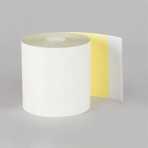 3" x 95' (76mm x 29m) 2-Ply Carbonless Paper (50 rolls/case) - White / Canary
